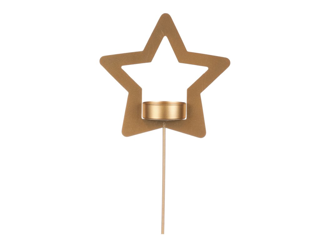 Kovový svícen ve tvaru hvězdy na čajovou svíčku. Ve formě zápichu. Různé varianty.