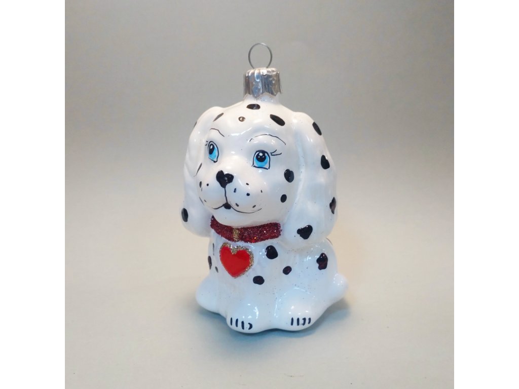 Ručně zdobená skleněná ozdoba na vánoční stromek. Roztomilý pejsek dalmatin originálně doplní Váš vánoční stromek.