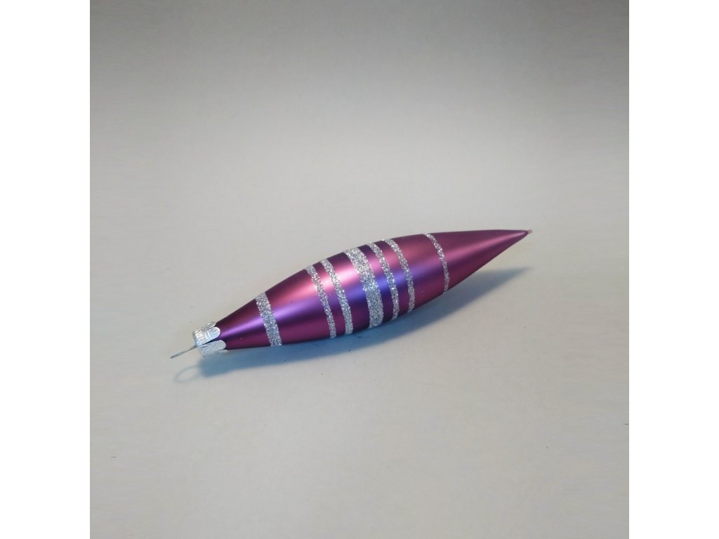 Ručně vyráběná skleněná ozdoba ve tvaru rakety v matném fialovém provedení. Díky malovanému stříbrnému dekoru se tato ozdoba stane vhodným doplňkem Vašeho vánočního stromku.