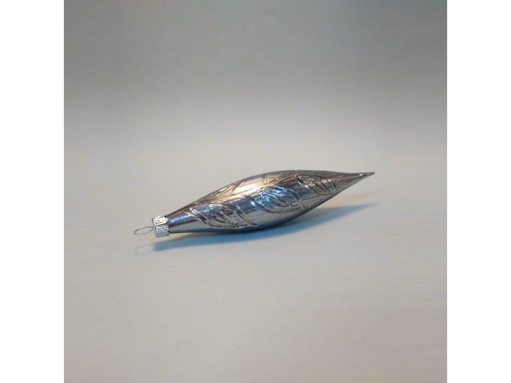 Ručně vyráběná skleněná ozdoba ve tvaru rakety ve stříbrném provedení. Díky plastickému dekoru se tato ozdoba stane výjimečným prvkem na Vašem vánočním stromku.