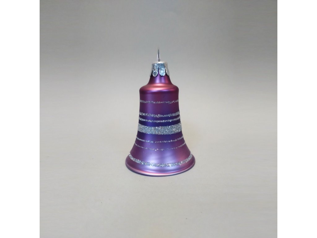 Ručně vyráběná skleněná ozdoba ve tvaru zvonku v matném fialovém provedení. Díky malovanému stříbrnému dekoru se tato ozdoba stane vkusným doplňkem Vašeho vánočního stromku.